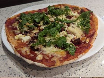 Cheese, Pineapple, Sweetcorn, Feta cheese, Sun-dried tomatoes, Pesto, Olives